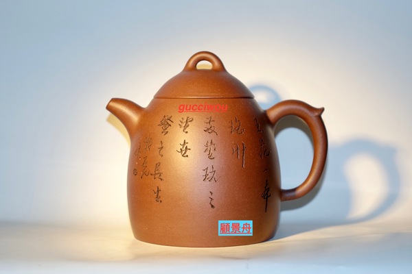 顧景舟人稱顧老,1915年生於江蘇宜興川埠鄉上袁村。他在壺藝上的成就極高,技巧精湛,且取材甚廣。他所享的聲譽可媲美明代的時大彬,世稱壺藝泰斗。是我國近代傑出的紫砂陶藝家,近代宜興有著名的七大藝人之一(任、吳、裴、王、朱、顧、蔣)。顧老生前致力於創建紫砂工藝廠,其作品充份表現精、氣、神、韻之美,不但深具東方特有藝術特色,更賦予時代氣息,堪稱為紫砂壺之一代宗師!80年代在港拍賣價已為65萬元人民幣。現每把壺時價均超過一百萬元,廣受海內外收藏家爭相購藏,惜生前作品不多,能珍藏者少之又少。